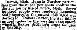 Mich., June 2: Further particulars from the upper peninsula confirm the
